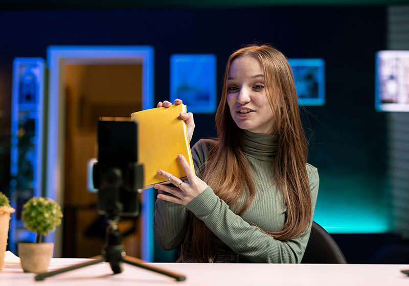 - Aesthetic shelfie: fotografía estética del librero personal. No se trata solo de mostrar libros, sino de darles un marco visual que combine con la identidad digital del lector.
